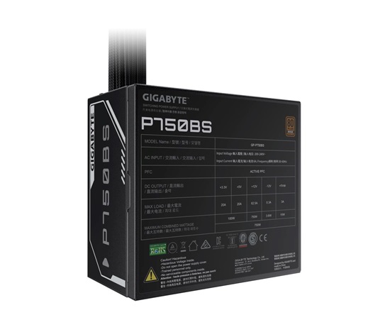 BAZAR – GIGABYTE zdroj P750BS, 750W, 80PLUS Bronze, 120mm – Po opravě (Bez příšlušenství)