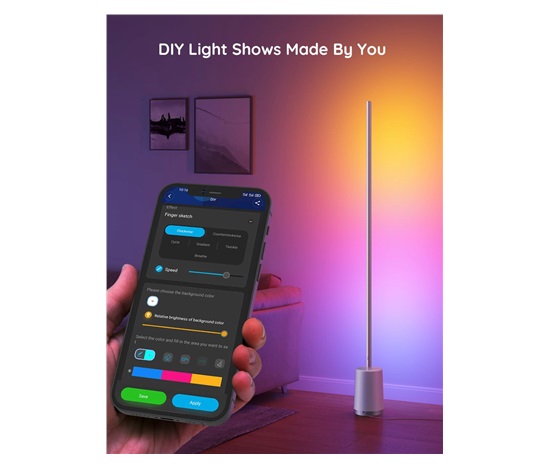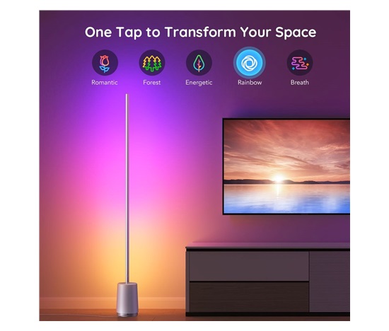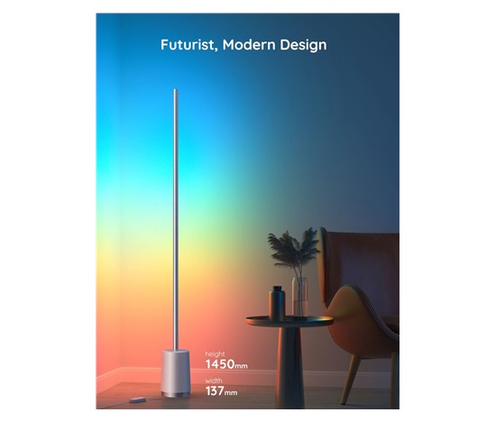 Govee Lyra je minimalistická podlahová lampa, navržená, aby perfektně zapadla do jakéhokoliv interiéru. Jednoduše se hodí všude, protože je ve zhasnutém stavu velmi nenápadná. Vše se změní po aktivaci, kdy se probere jejích 1500 lumenů. Díky diodám s technologií 4 v 1 RGBICWW dosahuje světlo ohromující intenzity. K dispozici je přes 16 milionů barev nebo bílá laditelná od 2200 do 6500 K. Lampa měří téměř 1,5 metru, ale zabírá minimální prostor a lze ji tak umístit doslova kamkoliv. Nejvíce jí to však sluší v rohu, kdy osvítí maximální prostor za sebou a vykouzlí na vaše zdi úžasně plynulé barevné přechody. Životnost lampy je u Govee standardních 50.000 hodin. Ovládání je možné aplikací Govee Home, Google Home, pomocí asistentů Google, Apple i Amazon. Pro maximální pohodlí v balení naleznete i klasický dálkový ovladač, který je kdykoliv v pohotovosti, připnutý přímo k lampě. Samozřejmostí jsou přednastavené scény, kterých je zde 64, několik režimů synchronizace s hudbou a pokud si ani tak nevyberete, čeká na vás DIY režim, který vám dá 100% kontrolu při které je jediný limit vaše fantazie.