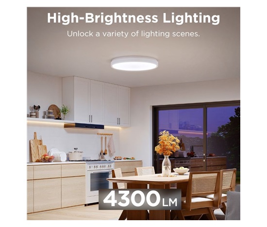 Toto stropní svítidlo nabízí mimořádný jas až 4300 lumenů bílé barvy, což z něj činí ideální volbu pro místnosti o velikosti 15–20 m2. Díky rovnoměrnému rozptylu světla zajistí dostatečné osvětlení ložnice, pracovny nebo obývacího pokoje, aniž by bylo příliš ostré. Skvělá volba pro ty, kteří chtějí spojit stylový design s praktickým výkonem.