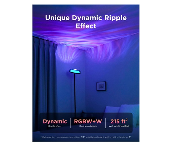 Horní část lampy je vybavena vlnkovým projekčním efektem, který proměňuje stěny a stropy v pohyblivé světelné vzory. Efekt je dynamický a plynulý, takže každý večer působí jako mini světelná show. Ideální pro relaxaci, večírky nebo jednoduše pro wow efekt v každém pokoji.