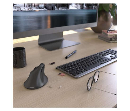 BAZAR-Hama vertikální ergonomická bezdrátová myš EMW-500L, pro leváky, černá – Poškozený obal (komplet )