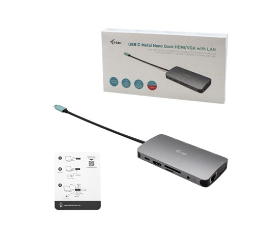 i-tec USB-C Metal Nano Dock HDMI/VGA with LAN + Charger 100W