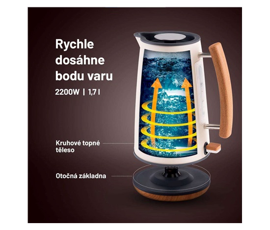 Díky otočné základně můžete s konvicí snadno manipulovat a jednoduše ji přesouvat.