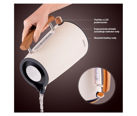 I mezi rychlovarnými konvicemi lze najít tu, která dodá vaší kuchyni punc stylu a originality. Konvice Lauben je navržena v minimalistickém a vkusném severském designu, který se bude ve vaší kuchyni vyjímat. Tělo konvice je vyrobeno z #304 nerezové oceli. Pogumovaný povrch konvice v kombinaci s rukojetí v dřevěném dekoru vypadá na lince stylově. Hlavní vypínač konvice disponuje LED podsvícením.