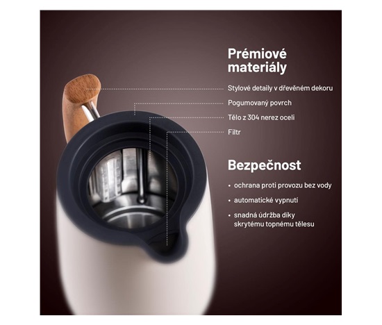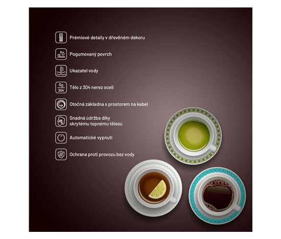 Konvice je vybavena pojistkou proti přehřátí i vaření bez vody.