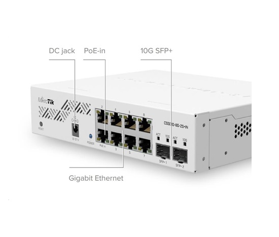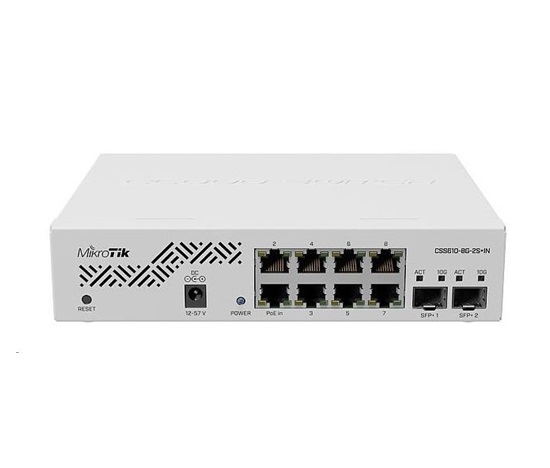 BAZAR – MikroTik Cloud Smart Switch CSS610-8G-2S+IN, 8 gigabit.portů, PoE-In, 2xSFP+, SwOS – Rozbaleno (Komplet)