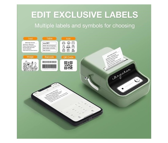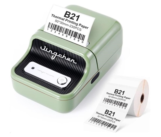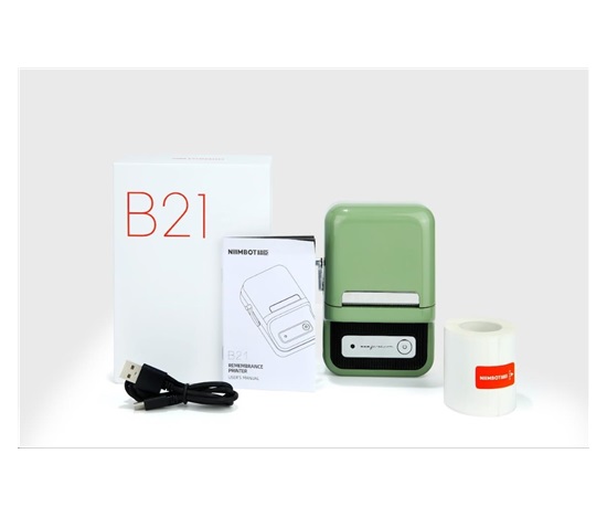 BAZAR – Niimbot Tiskárna štítků B21S Smart, zelená + role štítků 210ks – Poškozený obal (Komplet)