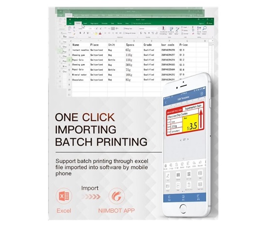 Model Niimbot B21S umožňuje také tisk přímo z PC. Do aplikace Niimbot si také můžete třeba naimportovat připravená data z Excelu.