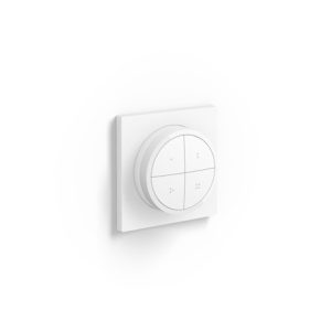 Otočný ovladač Tap je k dostání v černém a bílém provedení. Každým tlačítkem můžete ovládat až tři místnosti nebo zóny, otáčením vnějšího prstence měníte jas světla. Ovladač můžete připevnit na zeď, dát na magnetický povrch nebo používat jako dálkové ovládání.