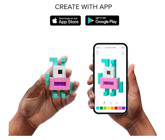 Aplikace PIXIO spolu se stavebnicí PIXIO pomáhá učit se hrou. Pomáhá rozvíjet kreativitu,