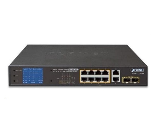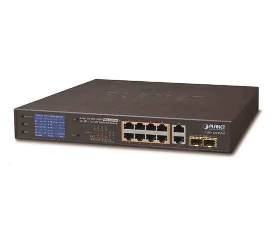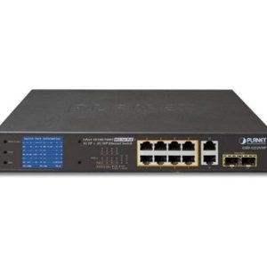 Neřízený switch disponující osmi RJ-45 porty, které jsou vybaveny PoE+ napájením standardu 802.3af/at a dosahují rychlostí 10/100/1000 Mbps. Dále jsou přítomny dva RJ-45 porty bez PoE napájení. Samozřejmostí je dvojice SFP portů pro rychlé datové přenosy až 1000 Mbps. Díky tomu je tento switch vhodný pro použití v kombinaci s IP kamerami.