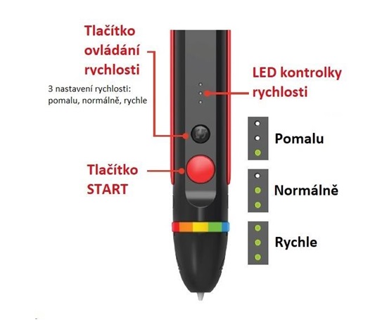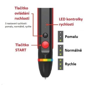 • Nastavení rychlosti tisku pro větší flexibilitu při vytváření modelu, včetně pomalého nastavení FINE pro volné kreslení 3D modelů ve vzduchu