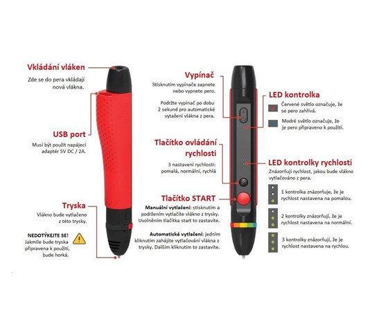 • Snadno použitelné ergonomické 3D pero pro praváky i leváky