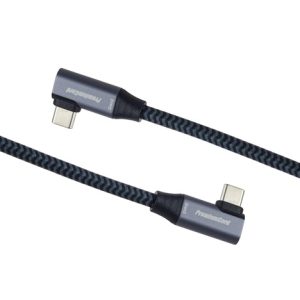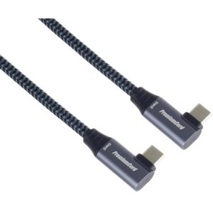 PremiumCord USB-C 2x zahnutý 90° kabel ( USB 3.2 GEN 2×2, 5A, 100W, 20Gbit/s ) hliníkové krytky konektorů, bavlněný oplet, 0,5m