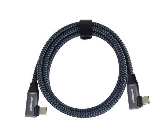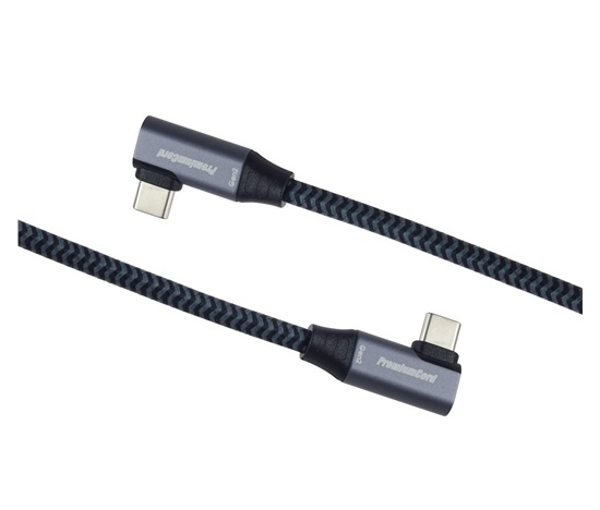 PremiumCord USB-C 2x zahnutý 90° kabel ( USB 3.2 GEN 2×2, 5A, 100W, 20Gbit/s ) hliníkové krytky konektorů, bavlněný oplet, 0,5m