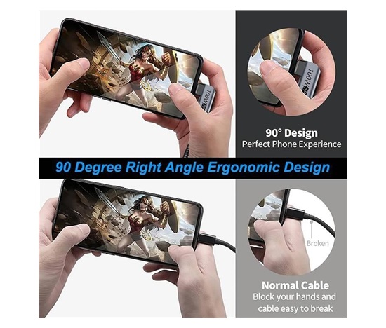 – První konektor: USB 3.2 zahnutý 90° typ C samec