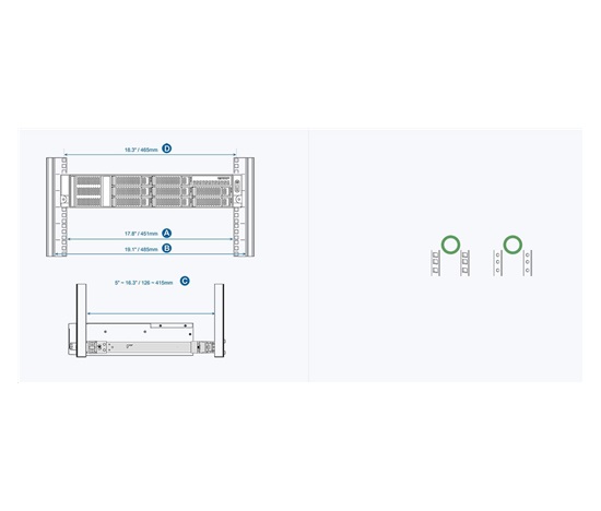 Sady kolejnic QNAP Rail Kits pomáhají při instalaci QNAP NAS do racku. Posuvné kolejnice umožňují zasunutí QNAP NAS dovnitř a vysunutí ven pro snadnou údržbu a správu. Modely QNAP NAS určené do racku vyhovují standardům rackové montáže ANSI/EIA-RS-310-D. Než nakoupíte serverový rack, nejprve se prosím ujistěte, zda tento serverové rack odpovídá příslušným specifikacím.