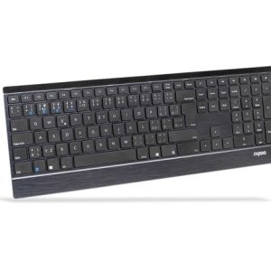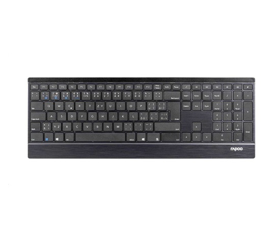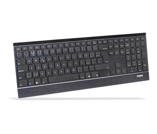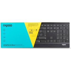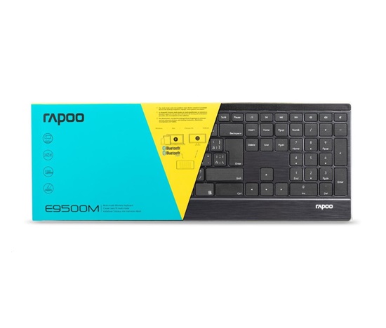 Tato ultratenká klávesnice spojuje prvotřídní materiály se stylovým designem. Tělo klávesnice vyrobené z nerezové oceli a hliníkové slitiny je nejen pevné a odolné, ale zároveň dodává pracovnímu stolu určitý styl. Klávesnice E9500M je nejen vyspělá konstrukcí, ale také funkcionalitou. Nabízí vícerežimovou technologii připojení firmy Rapoo – prostřednictvím spolehlivého bezdrátového vysílače 2,4 GHz, Bluetooth 3.0 a 4.1 – umožňuje současné připojení a přepnutí několika zařízení (s automatickým párováním). Navíc energeticky úsporná technologie firmy Rapoo zajišťuje životnost baterií až 12 měsíců, takže minimalizuje potřebu jejich výměny.