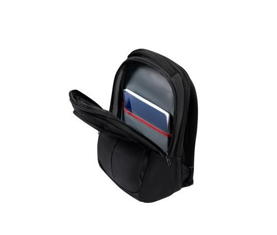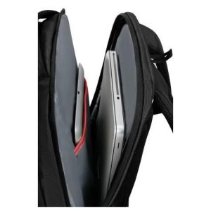 Batoh na notebook Samsonite LAPT. BACKPACK M 15,6″ je rozdělen do tří částí. V první části je organizér + dvě vetší kapsy, ve druhé je kapsa na zip, kapsa na dokumenty + volný prostor. Ve třetí části je polstrování na uložení notebooku a přihrádka na tablet. Batoh má ochranné zádové polstrování, nastavitelné zádové popruhy a tzv. návlekový pásek sloužící k připevnění na rukojeť kufru.