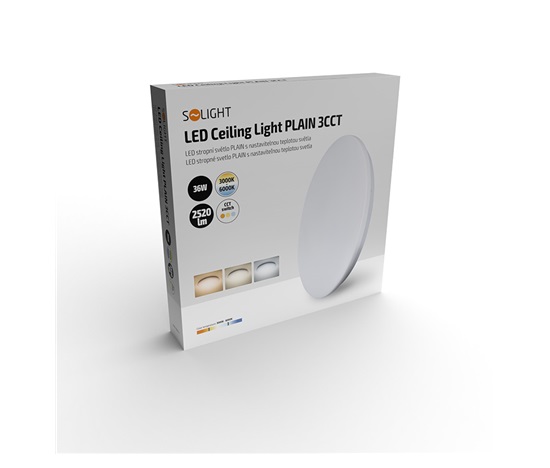 BAZAR – Solight LED stropní světlo Plain, 3CCT, 36W, 2520lm, 3000K, 4000K, 6000K, kulaté, 45cm – Poškozený obal