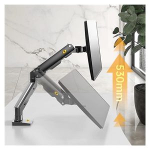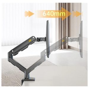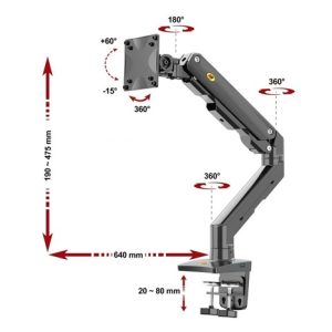 Jeden z nejkvalitnějších stolních držáků pro zavěšení širokoúhlých monitorů nebo All in One PC – profesionální, poctivá konstrukce, dizajn propracovaný do detailu a velmi snadné polohování. Držák doporučujeme i náročným zákazníkům, do vytížených provozů, kanceláří nebo showroomů. Své uplatnění najde na každém stole. Držák je ideální na širokoúhlé i klasické monitory, All in One Pc nebo televizory s úhlopříčkou 27-45″, u širokoúhlých monitorů může být úhlopříčka i větší. Podmínkou je hmotnost v rozmezí 5-16kg, u lehčích obrazovek nebude možné výškové polohování. Držák podporuje VESA 75×75 a 100×100, v případě potřeby nabízíme i rozšíření na 200×100, 100×200 a 200×200. Kompletní polohovatelnost: otáčení +/-180°, naklápění +60°/-15°, snadné nastavení výšky díky plynovému pístu od 195mm až do 475mm, nastavení vzdálenosti od úchytu 0-640mm, funkce pivot, port USB, propracované vedení kabeláže, 2 typy stolních úchytů.