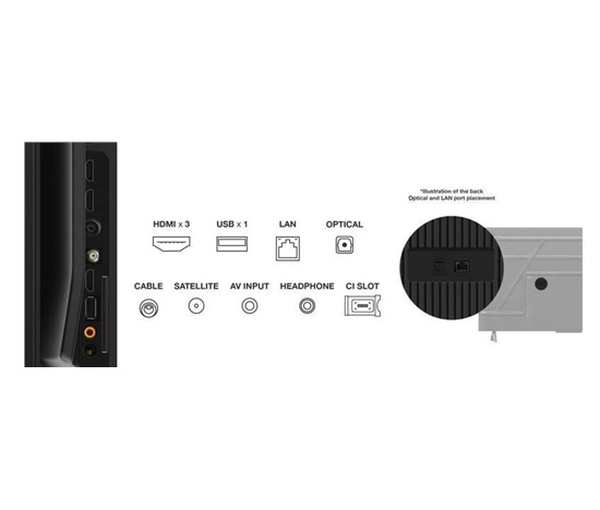 Použití:Domácí; Smart TV; Úhlopříčka displeje („):43; Rozlišení:4K UHD 3840×2160; Formát obrazovky:16:9; Technologie TV:LED; Podsvícení:Direct LED; Technologie panelu:LED; Obnovovací frekvence:50/60 Hz; Tuner:DVB-T2, DVB-S2, DVB-T, DVB-C