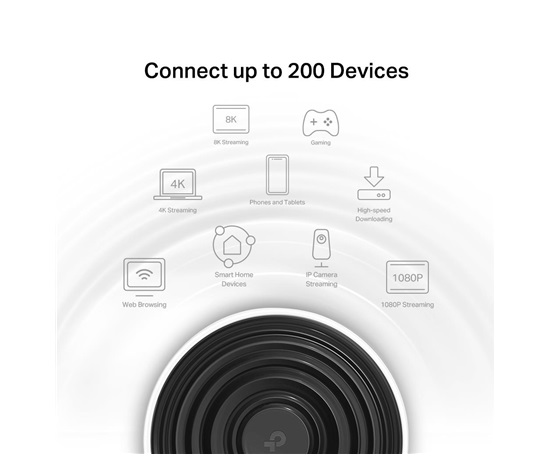 - Skutečně třípásmová rychlost – Všechna tři pásma pracují společně a poskytují bleskurychlé připojení až 5 400 Mbit/s pro více než 200 zařízení