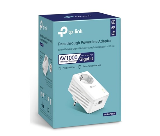 BAZAR – TP-Link TL-PA7017P průchozí powerline adaptér (AV1000,1xGbE, HomePlug AV2) – rozbaleno