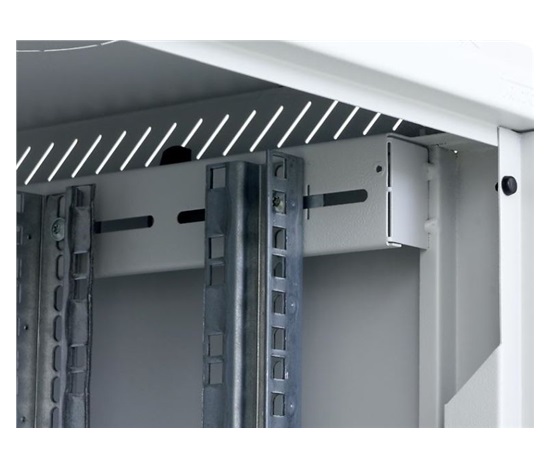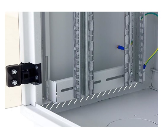 Dva páry 19“ vertikálních lišt jsou plynule nastavitelné v libovolné hloubce rozvaděče. To usnadňuje montáž zařízení i organizaci propojovacích kabelů.