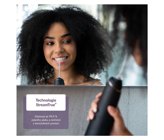 Naprostá většina zubních kazů vzniká v mezizubních prostorech. Jejich pravidelné čištění je proto nutností. Bývá ale zdlouhavé a často ne úplně příjemné. S ústní sprchou TrueLife AquaFloss Compact C300 je čištění mezizubních prostor o mnoho snazší a šetrnější. Díky technologii StreamTrue&reg proud kapek vody a vzduchu, který vychází z trysky ústní sprchy, dokonale pronikne i do nejmenších prostor, kde účinně odstraňuje až 99 % zubního plaku i bakterií. Díky kompaktnímu designu a výdrži baterie můžete se sprchou bez obav cestovat. Její používání je snadné a vyžaduje minimum nácviku. Sprcha nabízí 5 režimů čištění s různými intenzitami tlaku, včetně režimu Pulse s technologií PulseTrue&reg, díky které přístroj masíruje dásně, prokrvuje je a napomáhá tak jejich regeneraci. Díky funkci DIY si můžete vytvořit vlastní režim čištění, ve kterém si zvolíte intenzitu tlaku vody, která vám bude nejvíce vyhovovat. Přístroj má 6 speciálních trysek, které jsou navrženy pro vaše konkrétní potřeby.