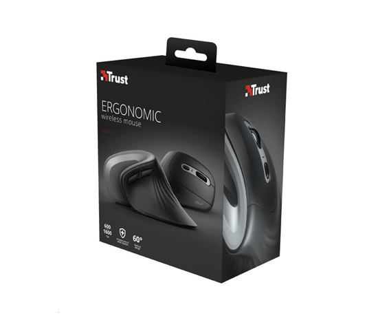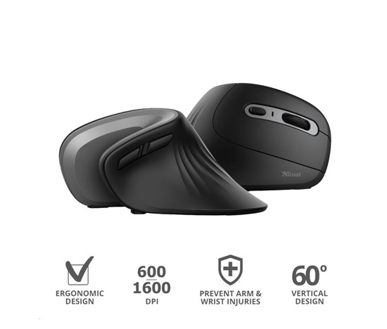 BAZAR – TRUST ergonomická vertikální myš Verro Wireless Ergonomic Mouse, black – Poškozený obal (Komplet)