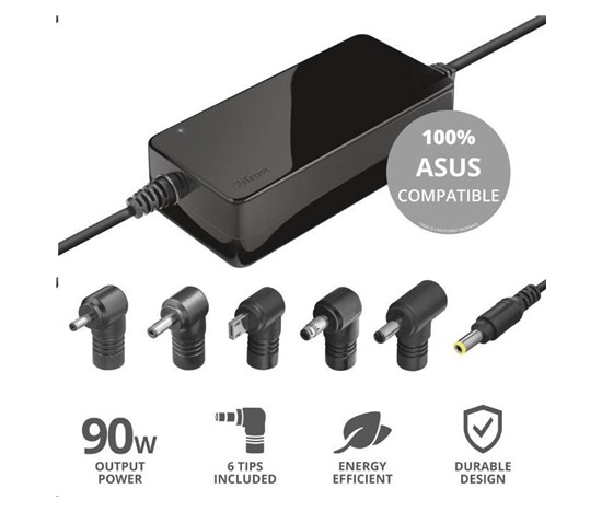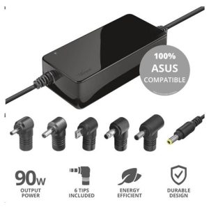Úvod Elektronika Notebooky a Ultrabooky Příslušenství k notebookům a ultrabookům BAZAR – TRUST napájecí adaptér MAXO pro notebooky ASUS 90W, vč. koncovek – Poškozený obal (Komplet)