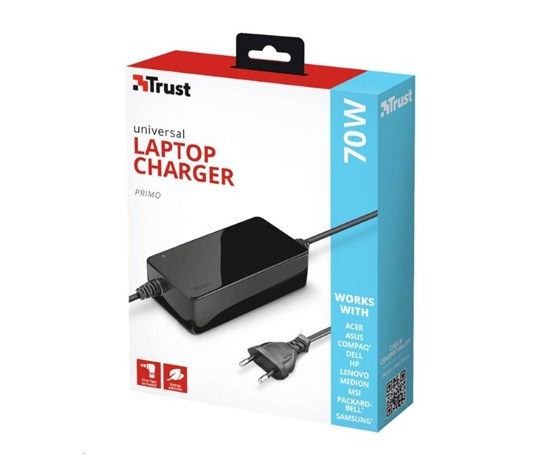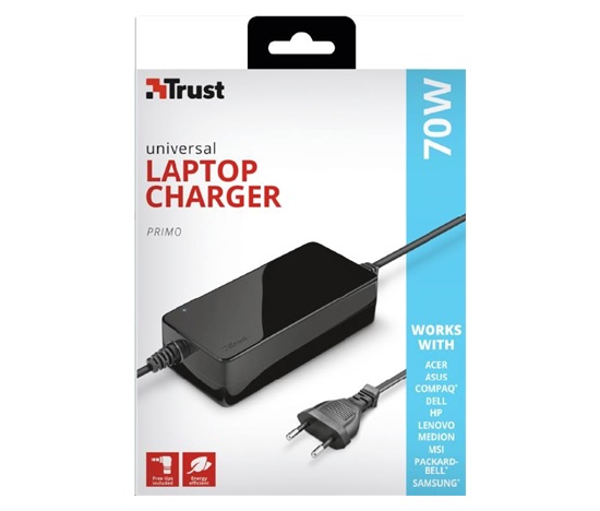 BAZAR – TRUST Univerzální napájecí adaptér pro notebooky Primo 70W-19V Laptop Charger – Poškozený obal (Komplet)