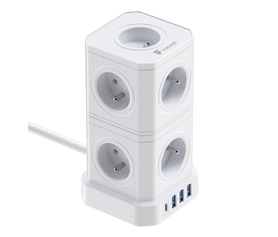 Představujeme Viking ACT94 – revoluční elektrickou zásuvku, která rozšiřuje standardní zásuvku na dalších 9 x AC 230V, 3 x USB-A a 1x USB-C výstupů.
