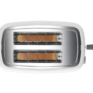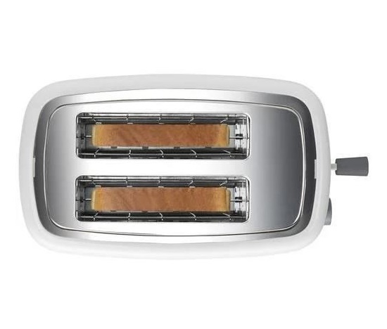 Topinkovač – na 2 topinky, regulace opékání, rozmrazování, tlačítko okamžitého ukončení, automatické vypnutí a centrování, součástí vyjímatelná miska na drobky, příkon 820 W, materiál plast, barva bílá