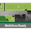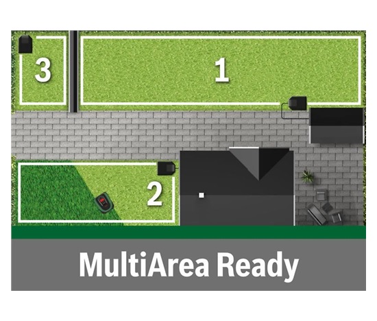 Díky funkci MultiArea poseče více travních ploch (až do 700 m2) a vypořádá se s úzkými průjezdy (75 cm mezi dráty).