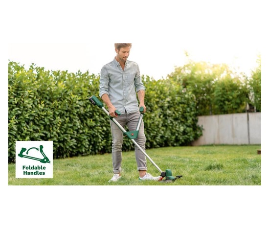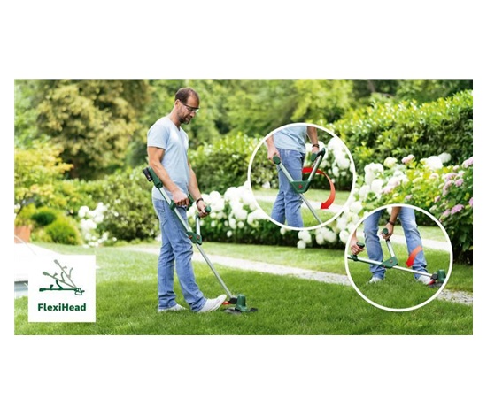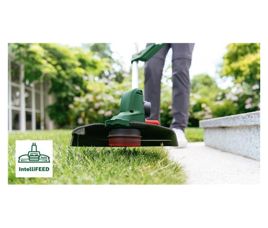Ergonomický design rukojeti ve tvaru písmene V pro pohodlný postoj při práci, funkce IntelliFEED automaticky odvíjí strunu pro práci bez přerušování, všestranná hlava umožňuje náklon a úpravu okrajů bez použití rukou, sečení trávy a plevelů, zastřihování trávníků a úprava okrajů