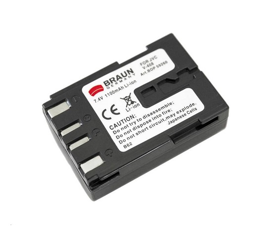 Li-Ion akumulátor Braun BDP-JV408 (Y, JVC BN-V408 – 7,4 V/1100 mAh) pro digitální videokamery JVC GR D20 D21, D23, D30, D33, D40, D50, D53, D60, D70, D72, D73, D90, D93, D200, D201, D220, D230, D231, GR DV400, DV500, DV700, DV800, DV1800, DV2000, DV3000, DV4000 DV5000, GR DVL100, DVL120, DVL140, DVL150, DVL150, DVL157, DVL160, DVL167, DVL200, DVL300, DVL310, DVL320, DVL355, DVL357, DVL365, DVL367, DVL450, DVL500, DVL505, DVL510, DVL520, DVL555, DVL557, DVL567, DVL720, DVL725, DVL765, DVL767, DVL805, DVL815, DVL820, DVL865, DVL867, DVL915, DVL920, GR DZ7, GR HD1. Tento akumulátor je dodáván v částečně nabitém stavu. Před použitím je vhodné akumulátor nabít. Plné kapacity akumulátoru může být dosaženo až po cca 4-5 nabíjecích cyklech. V případě více modelů jednoho typu akumulátoru s různou kapacitou vybírejte podle doporučení výrobce přístroje !!! Vyšší kapacita umožňuje delší dobu záznamu, ale větší rozměr (výška) akumulátoru může komplikovat nebo zcela bránit použití !!!