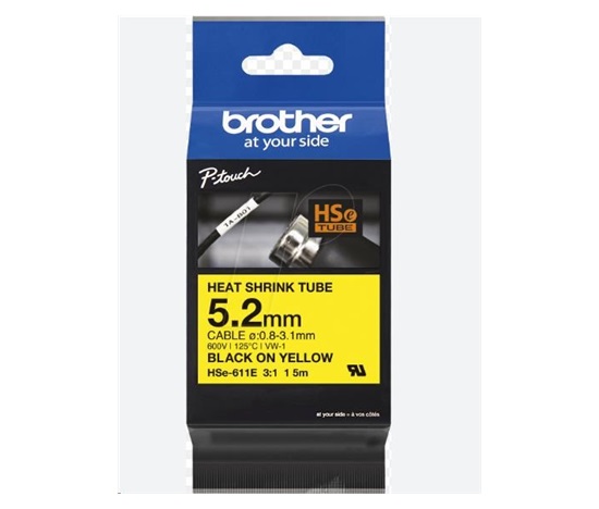 Úvod IT Multifunkce a tiskárny Spotřební materiál k periferiím BROTHER smršťovací bužírka – HSE-611E žlutá pro E300VP H300 H500 E550 P700 P750 D800 P900 P950 – 5,2mm / o 0,8-3,1 / 3:1