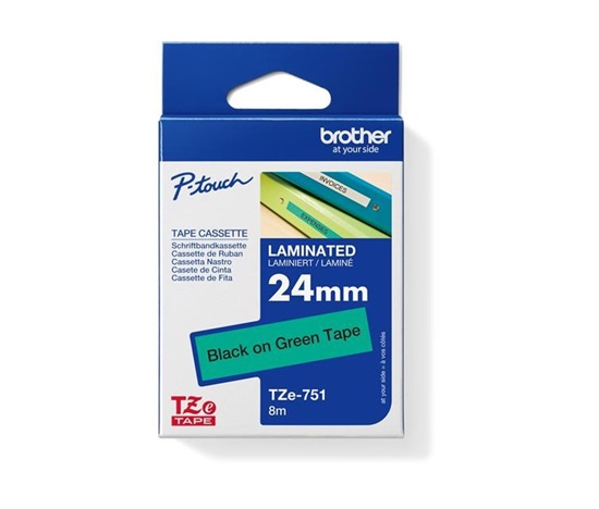 Úvod IT Multifunkce a tiskárny Spotřební materiál k periferiím BROTHER TZE751 – kazeta TZ šířky 24mm, laminovaná TZE-751, zelená/černé písmo