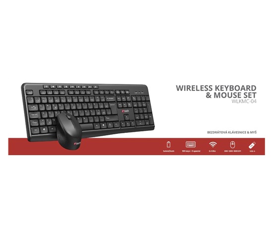 C-TECH klávesnice s myší WLKMC-04, Bezdrátový set 2.4GHz, CZ, Černá