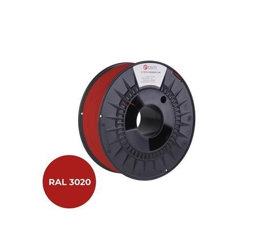 C-TECH Tisková struna (filament) PREMIUM LINE, PETG, dopravní červená, RAL3020, 1,75mm, 1kg