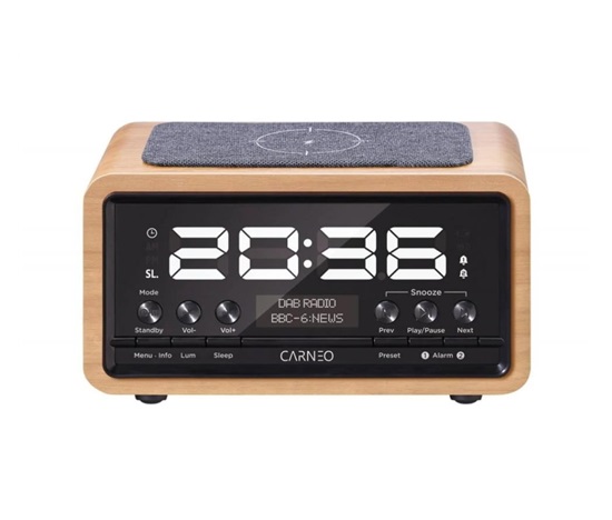 Umožňuje vyvolat až 40 stanic DAB a 40 stanic FM v paměti. Rádio umožňuje bezdrátové nabíjení telefonů, takže nepotřebujete kabelovou nabíječku. Jeho minimalistický design zaručuje, že se vejde i do malého prostoru. O aktuálním čase vás informuje velký, 4,7″ displej, na kterém se na 1,45″ OLED displeji zobrazují informace o aktuálně naladěné FM, DAB stanici. Můžete si nastavit až 2 různé časy buzení.