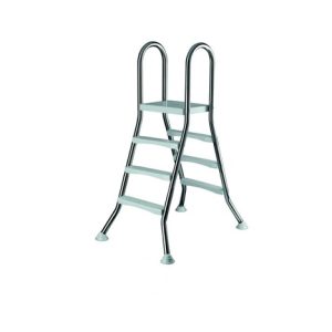 Bazénový žebřík pro bazény se stěnou až 90 cm, vyrobený z kvalitní nerezové oceli, která zajistí jeho dlouhou životnost. Žebřík má silné stabilní plastové schodnice a plošinu s protiskluzovou úpravou , udrží hmotnost až 150 kg. Žebřík má 3 stupně na vnitřní a vnější straně. Nohy žebříku jsou zakončeny koncovkami z protiskluzové gumy se stabilní podložkou, které zabraňují nechtěnému pohybu žebříku a zvyšují tak bezpečnost. Zároveň zabraňují poškození vašeho bazénu.
