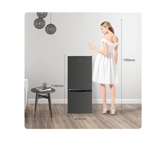 Kombinovaná lednice s mrazákem dole o celkovém objemu 117 litrů.