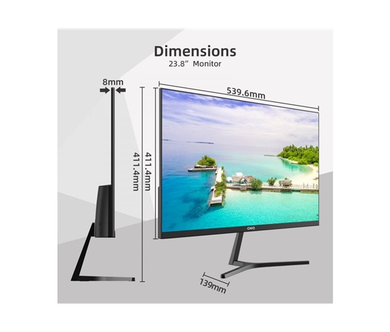 Monitor 23,8″, bezrámečkový a ultra tenký, Full HD 1920 x 1080, IPS, 16:9, 75 Hz, Flicker-free, Low Blue Light, Game Plus, FreeSync, kontrast 1000:1, HDMI, VGA, Display Port, Kensington Lock, VESA 75×75, energetická třída E.