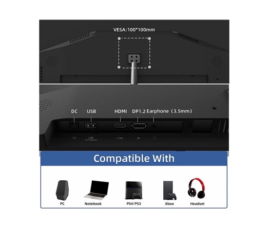 Připojení: HDMI, DP, USB a audio sluchátkový výstup.