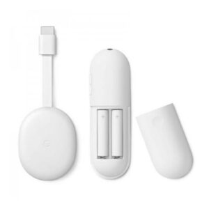 Multimediální centrum Google Chromecast 4 s Chromecast TV. Podpora 4K HDR, Dolby Vision, HDR10, HDR10+, Wi-Fi, Bluetooth. Připojení přes HDMI k televizoru, USB-C napájení (adaptér do CZ zásuvky není součástí balení). Integrovaný mikrofon pro hlasové ovládání s Google Assistant. Dálkový ovladač včetně AAA baterií. Komunikuje se zařízeními s Android i s iOS. Rozměry 6,1 x 1,25 x 16,2 cm. Hmotnost 55 g.