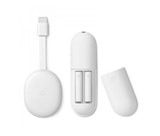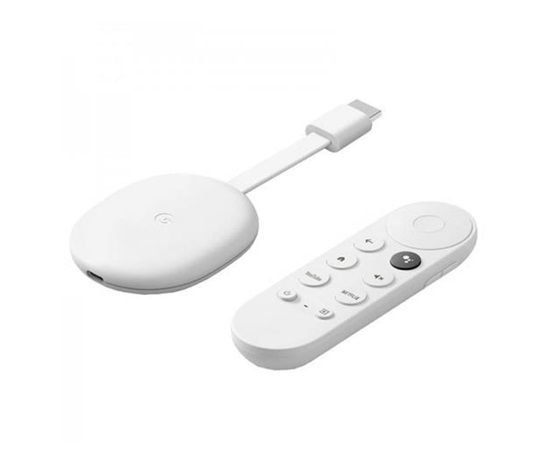 Multimediální centrum Google Chromecast 4 s Chromecast TV. Podpora 4K HDR, Dolby Vision, HDR10, HDR10+, Wi-Fi, Bluetooth. Připojení přes HDMI k televizoru, USB-C napájení (adaptér do CZ zásuvky není součástí balení). Integrovaný mikrofon pro hlasové ovládání s Google Assistant. Dálkový ovladač včetně AAA baterií. Komunikuje se zařízeními s Android i s iOS. Rozměry 6,1 x 1,25 x 16,2 cm. Hmotnost 55 g.