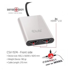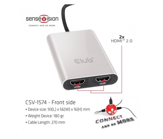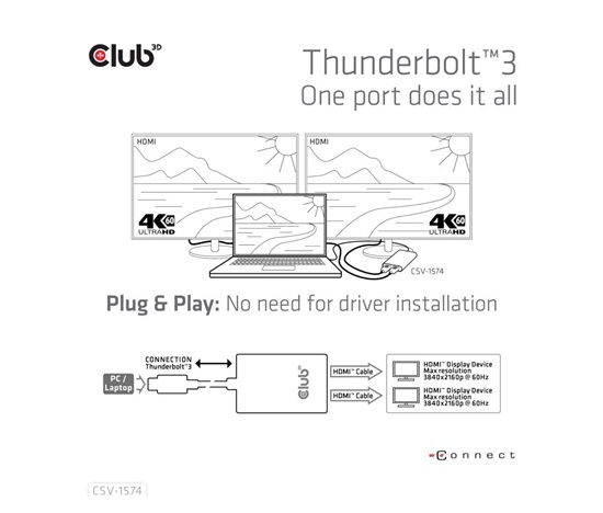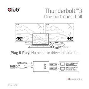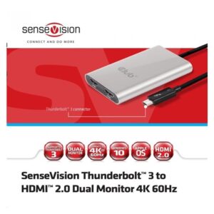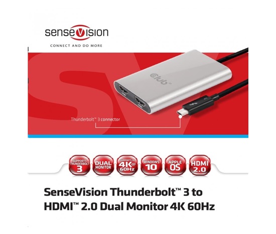 Club3D Adaptér Thunderbolt 3 na 2x HDMI 2.0 4K60Hz UHD
